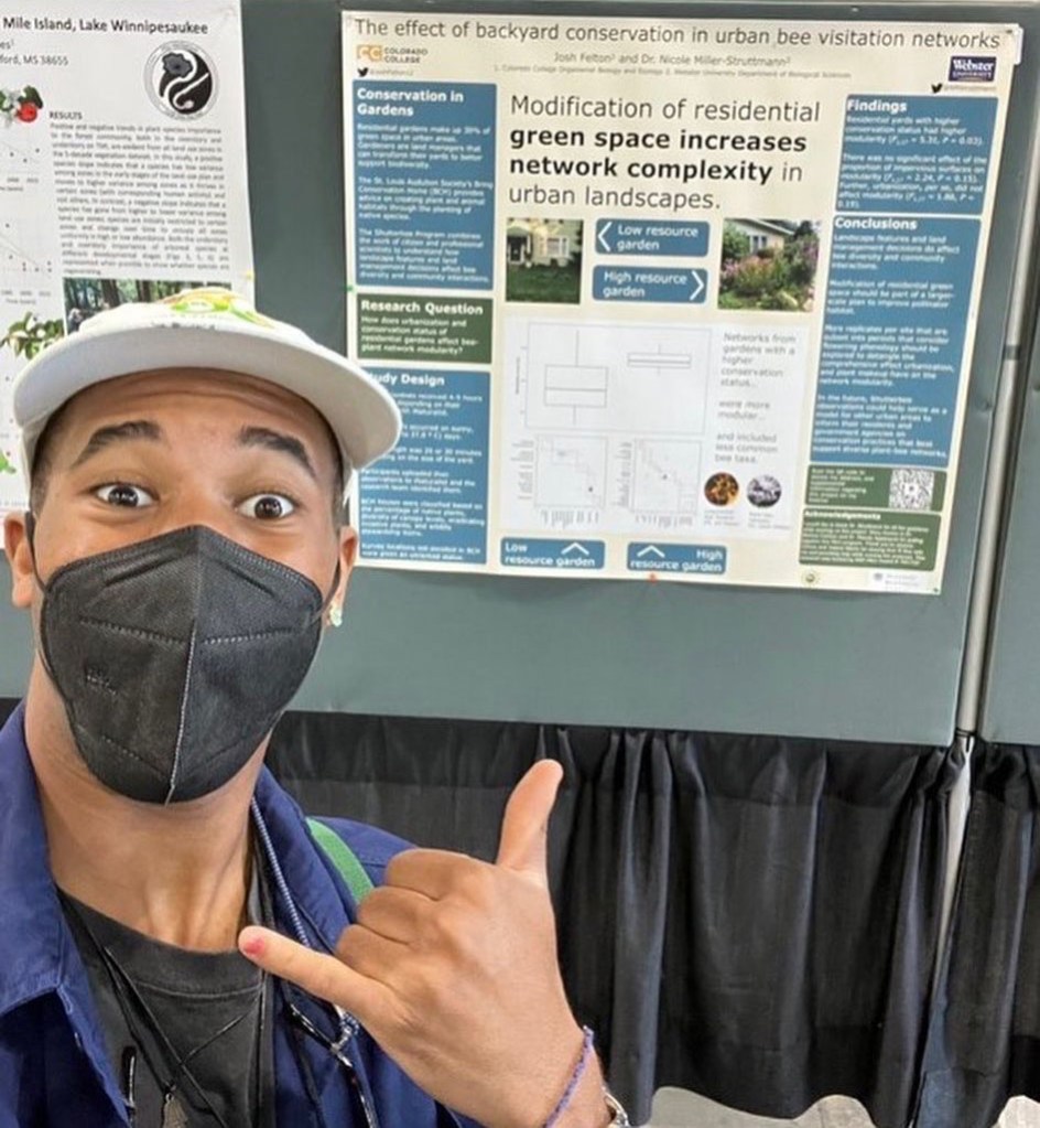 Networks with more specialized foragers tend to be more modular, which is when species within a group (or module) are more likely to interact with each other than with those outside their module (like clicks in human social groups). In an ecological setting, more clicks are better – it implies that there are more specialist pollinators. I tested whether modularity of bee-plant visitation networks in gardens differs depending on whether or not they are enrolled in the Bring Conservation Home Program, which helps facilitate native plant gardening and invasive species removal.