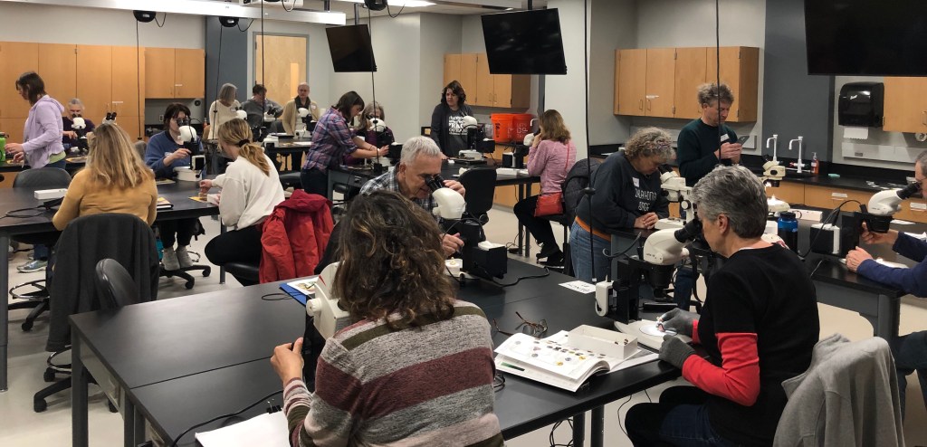 Once we saw how eager all of you were to identify bees, we knew we had to provide some resources to help. We created the bee identification guide with decision trees. Don’t worry, it’s not going away! We taught the guide three times via a series of Zoom classes. In 2023, we had an in-person course where participants could practice their skills by looking at real specimens under a microscope. If identifying bees (or any other organism) is something you’re still interested in, there’s a great community on iNaturalist that will help you refine your skills and offer advice.